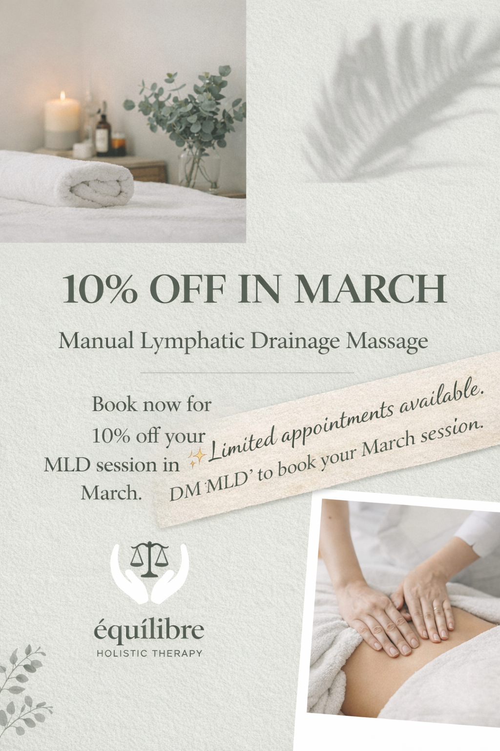 For March only, enjoy 10% off all MLD sessions.